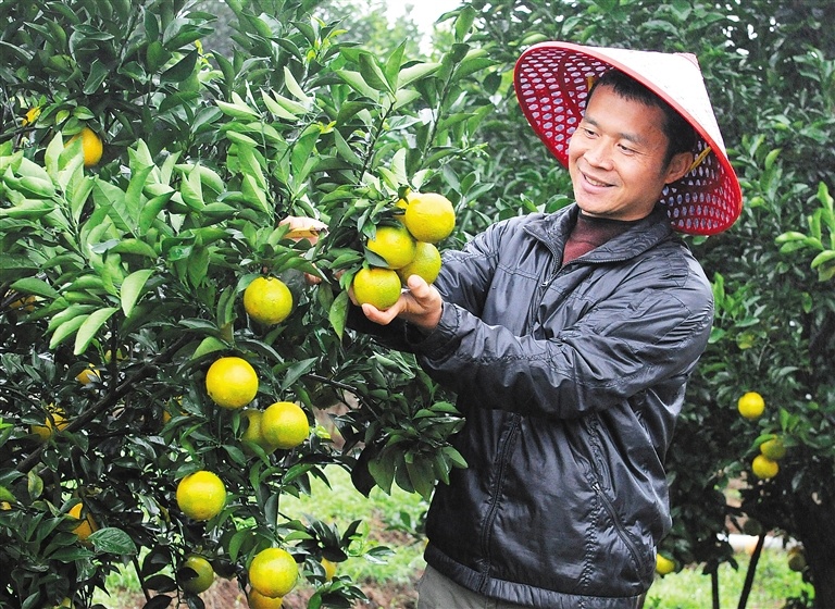 福橙幼樹一般栽種3年進(jìn)入初結(jié)果期,橙樹正常結(jié)果的生理特性是需要經(jīng)過冬季低溫或干旱條件,促進(jìn)枝梢花芽分化。然而海南比較特殊,這里的冬季不是每年都具備這個條件,因此通過調(diào)控福橙樹使其開花結(jié)果顯得尤為重要,在上年提前做好控梢、控水及控肥外,還要提前進(jìn)行環(huán)扎或環(huán)割處理,以實現(xiàn)福橙樹的正?;ㄑ糠只_(dá)到的目的。 控梢促花 控梢促花的內(nèi)在條件是枝梢的充分老熟,并積累了較多的碳水化合物,外在條件是干、冷的脅迫,秋梢的葉片在陽光下出現(xiàn)卷曲。為保證樹體的開花,對生長壯旺的樹可采用適度的斷根、扭枝、拉枝、環(huán)割及環(huán)扎等機(jī)械促花措施;化學(xué)促花的方法可用含多效唑類生長調(diào)節(jié)劑利,建議施用壯大300-500倍液噴霧(30-50毫升/30斤水)在秋梢轉(zhuǎn)綠后噴1~2次,過旺的樹可加入0.01%的乙稀利進(jìn)行噴霧能起到良好的促花作用。 果實采收 福橙果10月初開始著色,到11—12月完全成熟時,皮色金黃、肉質(zhì)鮮紅。采果前1個月,停止噴施農(nóng)藥和葉面肥。一般鮮銷果在果實正常成熟、表現(xiàn)出本品種固有的品質(zhì)特征(色澤、香味、風(fēng)味和口感等)時采收。在不降低果實品質(zhì)的前提下,紅桔砧福橙盡可能延遲采收期,以剛采收的鮮果供應(yīng)春節(jié)前后柑橘果品淡季市場。用圓頭果剪采果,要求一果兩剪:一剪,回縮或短截結(jié)果后的枝組;二剪,使果蒂平齊。 結(jié)果期管理 福橙樹經(jīng)過初結(jié)果試產(chǎn)后,即進(jìn)入盛果期。正常結(jié)果福橙樹因為結(jié)果較多、樹體營養(yǎng)消耗較大,得加大施肥量、更新結(jié)果枝組;同時防止樹形直立和過高,要回縮短截相關(guān)枝條,進(jìn)行矮化處理。這里推薦使用潤德利新款高級生理學(xué)營養(yǎng)肥料——富鉀花粉多糖 使用潤德利花粉多糖的三大理由 1. 潤德利花粉多糖由花粉提取而來,含有多種植物生長調(diào)節(jié)因子,增加光合產(chǎn)物的積累和運(yùn)輸促進(jìn)灌漿、壯桿,增加產(chǎn)量,促進(jìn)轉(zhuǎn)色,果實色鮮味美花粉是什么?花必須經(jīng)過傳粉才能結(jié)果,現(xiàn)在我們直接從花粉里提取養(yǎng)料,果樹還愁不結(jié)果么? 2. 潤德利花粉多糖,由潤德利總農(nóng)藝師任老師經(jīng)過精心試驗,發(fā)現(xiàn)氮磷比達(dá)到13%時,植物對養(yǎng)分的吸收效率最高,此外還添加了海南土壤中所匱乏的植物所必須的鉬元素,有助于果樹樹體健康。 3. 潤德利花粉多糖中添加的中微量元素為螯合態(tài),為什么是螯合態(tài)呢?研究發(fā)現(xiàn)元素在螯合態(tài)下更容易被植物吸收,如果只是施用無機(jī)肥,那么微量元素往往會和土壤中的物質(zhì)結(jié)合生成鹽,植物就難以吸收了。 春夏季,福橙結(jié)果樹要注意壓制頂部直立枝的生長,防止樹形直立和過高。一般可在春季花蕾期抹芽去頂部無花的營養(yǎng)枝,在放秋梢前15天對過旺過高的無果枝進(jìn)行短截,促發(fā)更多新的結(jié)果秋梢。對枯枝、內(nèi)膛陰蔽的弱枝、交叉枝要及時剪除,避免樹體相互交叉和郁蔽。 秋季于9月上中旬,在福橙樹中上部位,統(tǒng)一修剪落花落果枝和傾角朝上的壯旺無果枝,促發(fā)健壯秋梢作為結(jié)果母枝。 冬季福橙采果后,及時回縮結(jié)果枝組、落花落果枝組和衰退枝組,繼續(xù)短截處理各級骨干枝、延長枝,更新結(jié)果枝。繼續(xù)剪除枯枝、病蟲枝、交叉枝和內(nèi)膛陰蔽的弱枝。對較擁擠的骨干枝適當(dāng)疏剪開出“天窗”,增加樹冠內(nèi)膛光線。對當(dāng)年抽生的夏、秋梢營養(yǎng)枝,通過短截其中部分枝梢,防止大小年結(jié)果。對無葉枝組,在重疏刪基礎(chǔ)上,對大部分或全部枝梢短截處理。